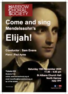 Harrow Choral Society’s Come & Sing Mendelssohn’s Elijah